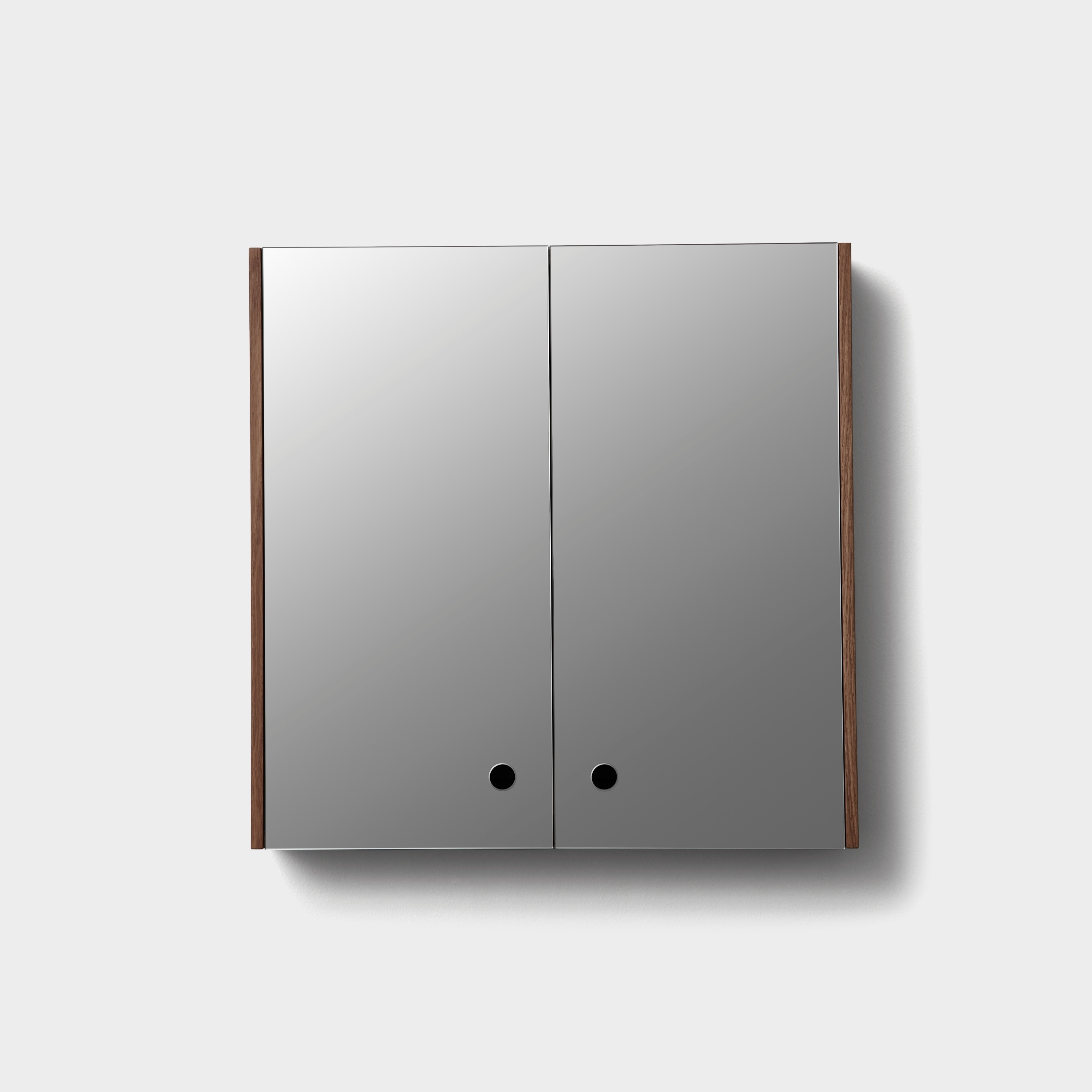 Bathroom cabinet in solid oak. This cabinet is available in two heights and has no back, which saves on material and prevents moisture and dirt from building up behind the mounted cabinet.