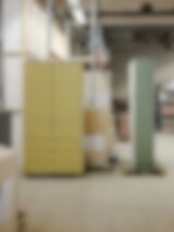 In Lammhult, the production staff are specialists in painting with egg oil tempera - a time-consuming process that requires a lot of manual labor and a long drying/curing time. After the first coat of egg oil tempera, the furniture is sanded before applying the next layer.