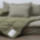 Down blanket from Reboco in a beautiful green colour. The blanket is filled with 100% recycled down from Re:Down. It is available in different colours and is perfect to put on top of the bed, stuff the bedding with or wrap around yourself on the sofa.