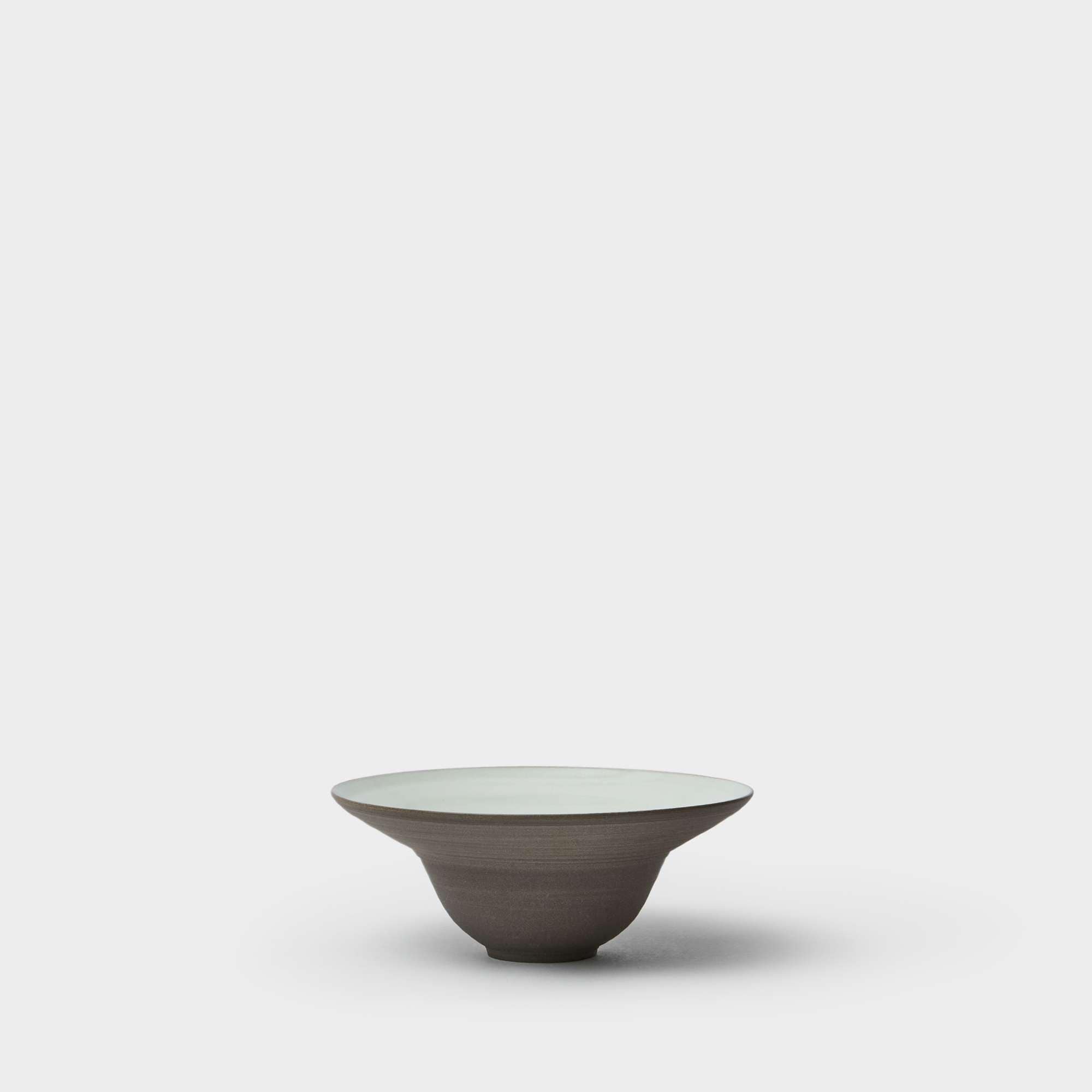 Bowl in anthracite grey stoneware with a raw exterior and glazed interior in semi-transparent white glaze. Made by Annica Gjerstad in her pottery studio in Sweden. The bowl has a diameter of approximately 15 cm and a height of approximately 5 cm. All measurements are approximate, as the shape and size may change slightly during the drying and firing process; for example, the rim may rise or fall. Each bowl thus has its own unique expression, and natural variations in glaze and surface occur. The ware is dishwasher and microwave safe. To preserve the glaze surface over time, a mild dishwasher detergent is recommended.