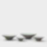 Large bowl in anthracite grey stoneware with a raw exterior and glazed interior in semi-transparent white glaze. The bowl has a diameter of approximately 18 cm and a height of approximately 6 cm. All measurements are approximate, as the shape and size may change slightly during the drying and firing process; for example, the rim may rise or sink. Each bowl thus has its own unique expression, and natural variations in glaze and surface occur. The ware is dishwasher and microwave safe. To preserve the glaze surface over time, a mild dishwasher detergent is recommended.