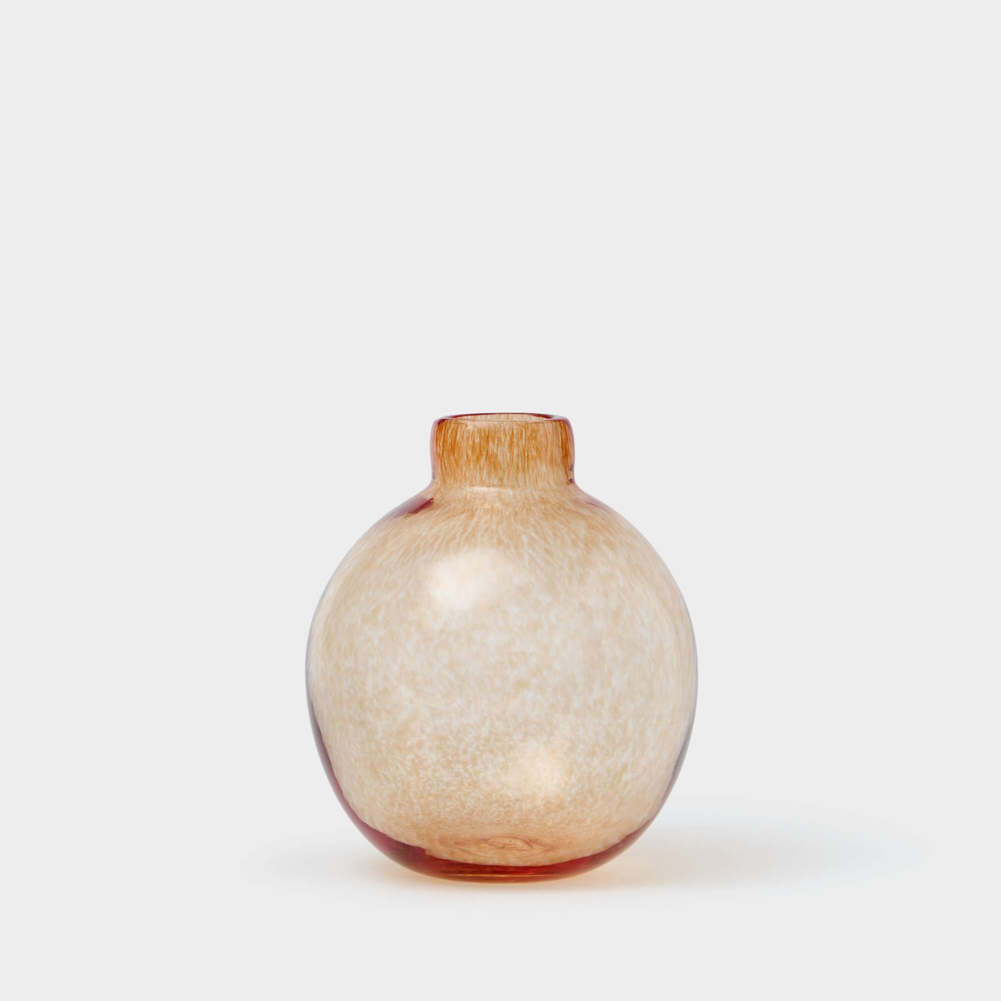Vas Albin är formgiven av Ebba von Wachenfeldt och tillverkas i handblåst glas, vilket gör varje exemplar unikt. Den terrakottafärgade vasen kan placeras på bord, hyllor eller fönsterbrädor och fungerar både ensam och tillsammans med andra vaser. Den passar för snittblommor eller som dekorativ detalj i olika miljöer.