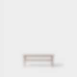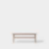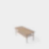 Ett generöst soffbord i massiv ek. Bordet upplevs både mjukt och lätt trots sin fyrkantiga form. Bordsbenen är koniskt svarvade och den vertikala placeringen, en bit in under bordsskivan, ger möbeln dess svävande och lätta uttryck.